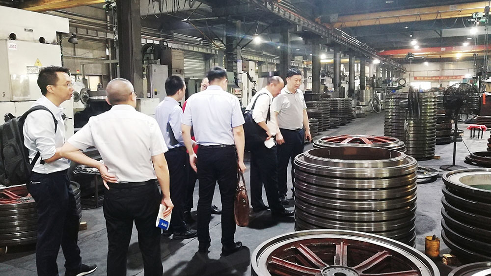 會(huì)后,在董事長傅開實(shí)陪同下,專家組一行人走進(jìn)車間,深入了解公司的生產(chǎn)情況以及針織大圓機(jī)的制作工藝。