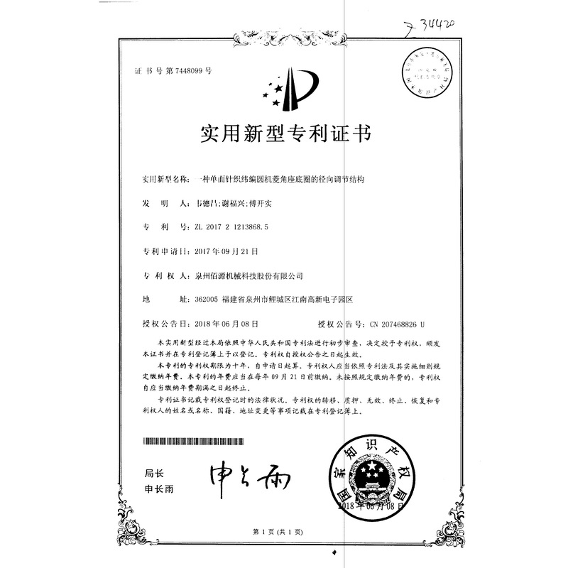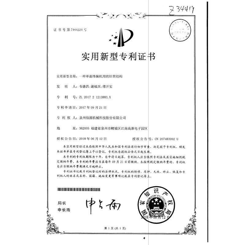 新型專利-一種圓編機的提花片